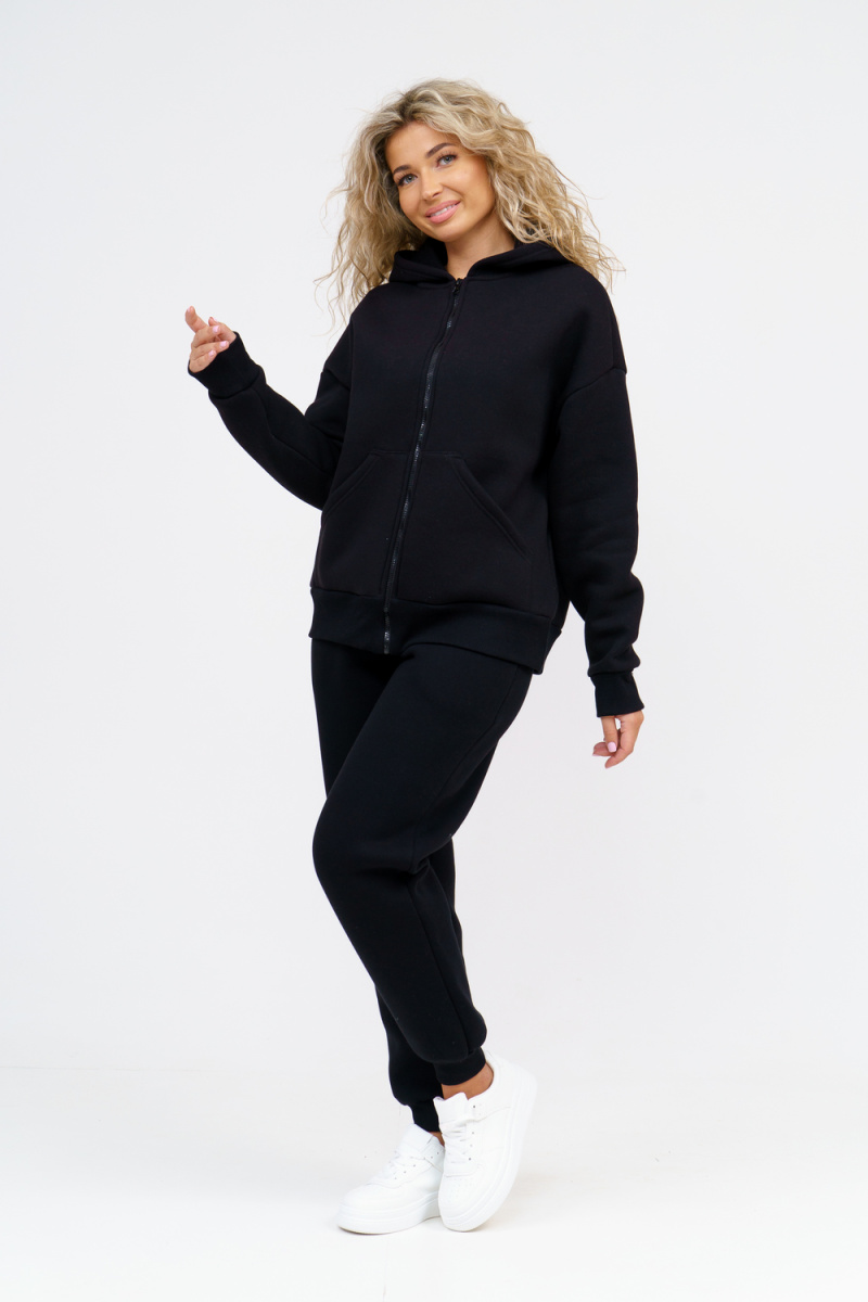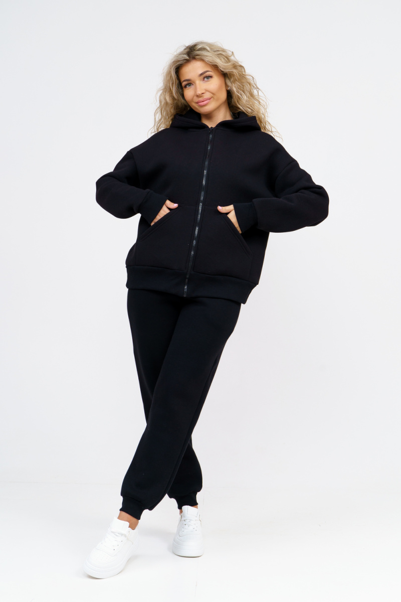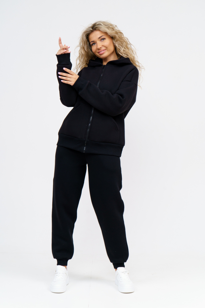 Модный женский костюм выполнен из качественного футера 3-нитки с начёсом, который обладает необыкновенной мягкостью, натуральностью, гипоаллергенностью (не раздражает кожные покровы и не провоцирует аллергическую реакцию), гигроскопичностью (костюм из футера с начесом вбирает и удерживает влагу в волокнах), износостойкостью (полотно отличается повышенной прочностью, устойчиво к повреждениям) и формоустойчивостью (при правильном уходе и стирке 30-40 °С), и обеспечивает максимальное удобство и комфорт при носке. Костюм состоит из современной "zip hoodi" свободного силуэта, которую дополняет: рукав с актуальной сейчас спущенной линией плеча, удобные карманы кенгуру и манжеты. Молния выполнена из качественных пластиковых зубьев закрепленных на прочной тесьме, что обеспечивает плавное скольжение бегунка. А также удобные брюки, которые дополнены вместительными боковыми карманами, поясом выполненным на специализированной поясной машине и манжетами выполненными из качественного кашкорсе. Длина рукава указана от точки