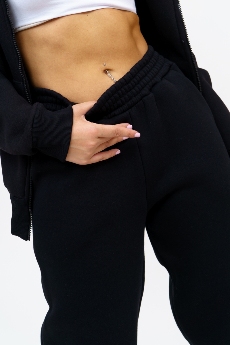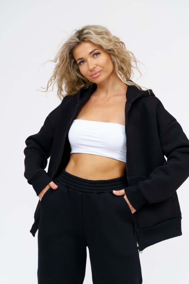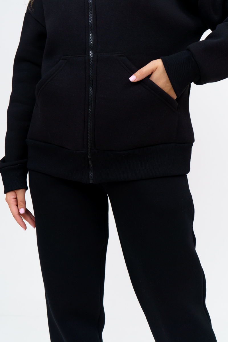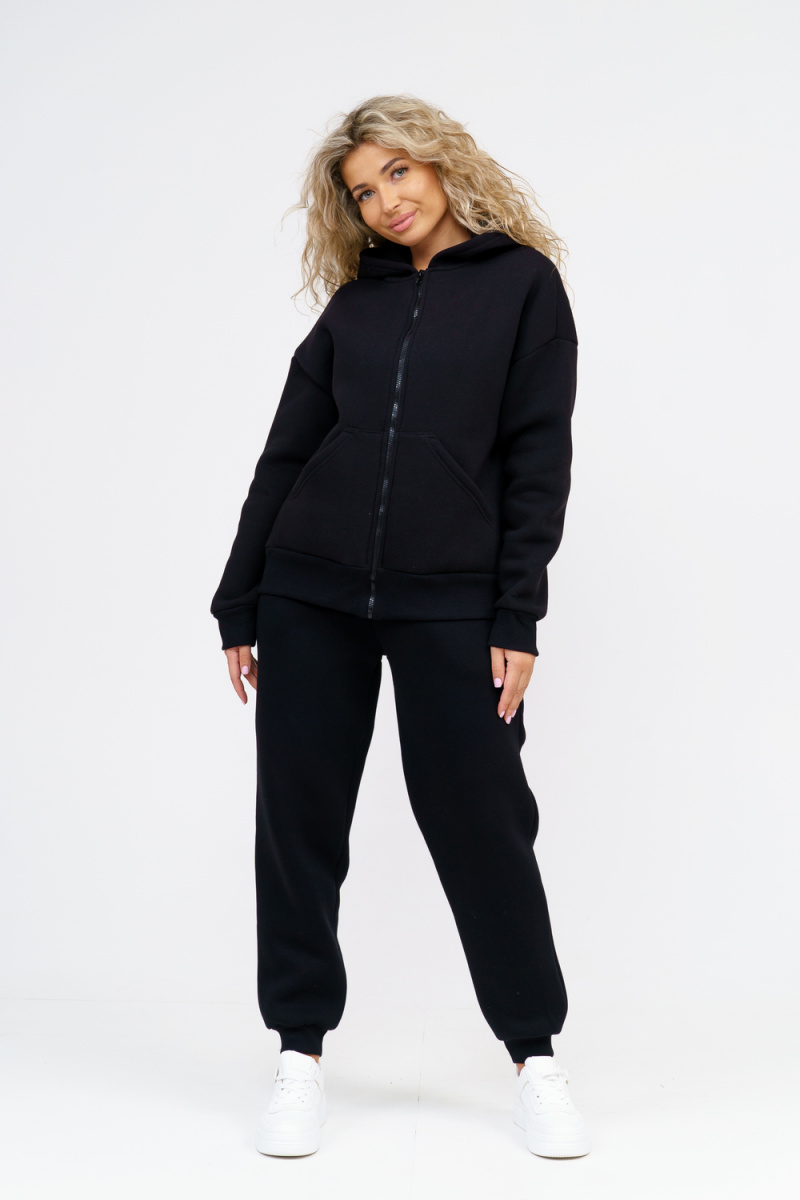 Модный женский костюм выполнен из качественного футера 3-нитки с начёсом, который обладает необыкновенной мягкостью, натуральностью, гипоаллергенностью (не раздражает кожные покровы и не провоцирует аллергическую реакцию), гигроскопичностью (костюм из футера с начесом вбирает и удерживает влагу в волокнах), износостойкостью (полотно отличается повышенной прочностью, устойчиво к повреждениям) и формоустойчивостью (при правильном уходе и стирке 30-40 °С), и обеспечивает максимальное удобство и комфорт при носке. Костюм состоит из современной "zip hoodi" свободного силуэта, которую дополняет: рукав с актуальной сейчас спущенной линией плеча, удобные карманы кенгуру и манжеты. Молния выполнена из качественных пластиковых зубьев закрепленных на прочной тесьме, что обеспечивает плавное скольжение бегунка. А также удобные брюки, которые дополнены вместительными боковыми карманами, поясом выполненным на специализированной поясной машине и манжетами выполненными из качественного кашкорсе. Длина рукава указана от точки