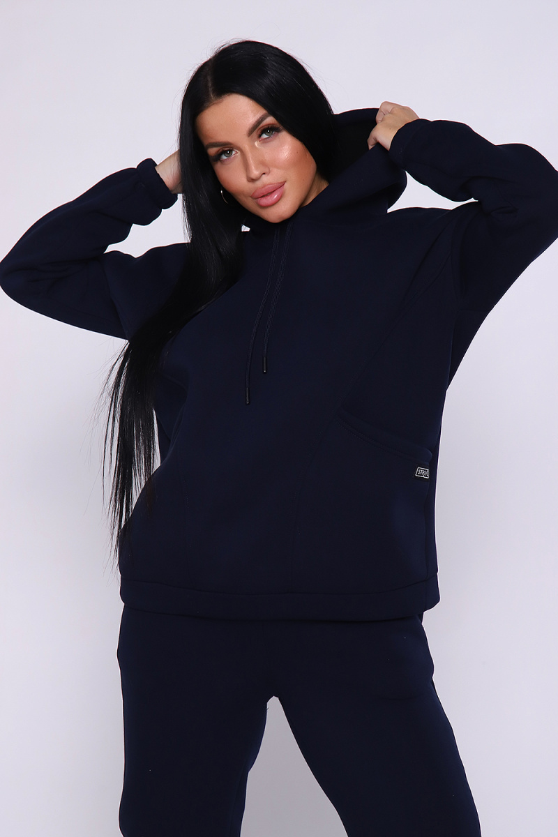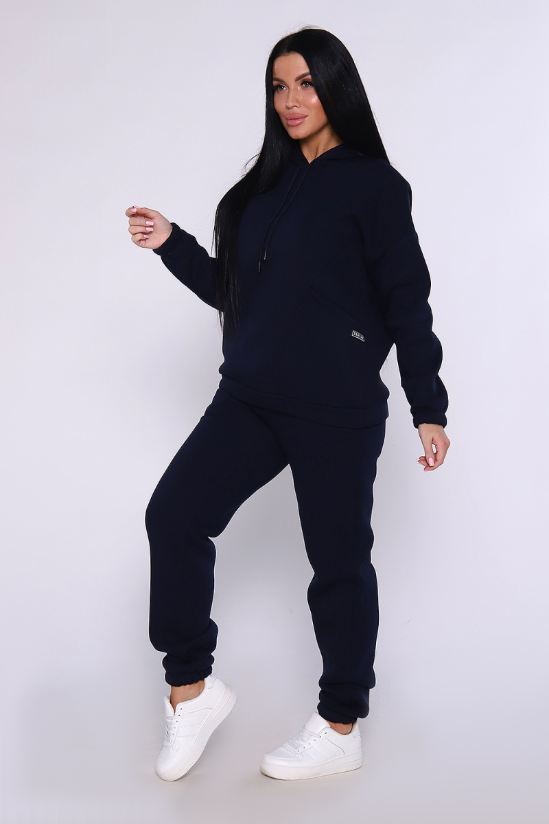 Теплый костюм выполнен из футера 3-х нитки с начесом с содержанием хлопка премиум качества. Костюм состоит из объёмной толстовки в стиле "оверсайз" с накладными карманами и джогеров. Низ брюк и рукавов на толстовке обработан резинкой. Пояс брюк на резинке, для удобства по бокам расположены прорезные карманы. Перед использованием желательно постирать костюм при 30 градусах, тогда излишний ворс примнется.