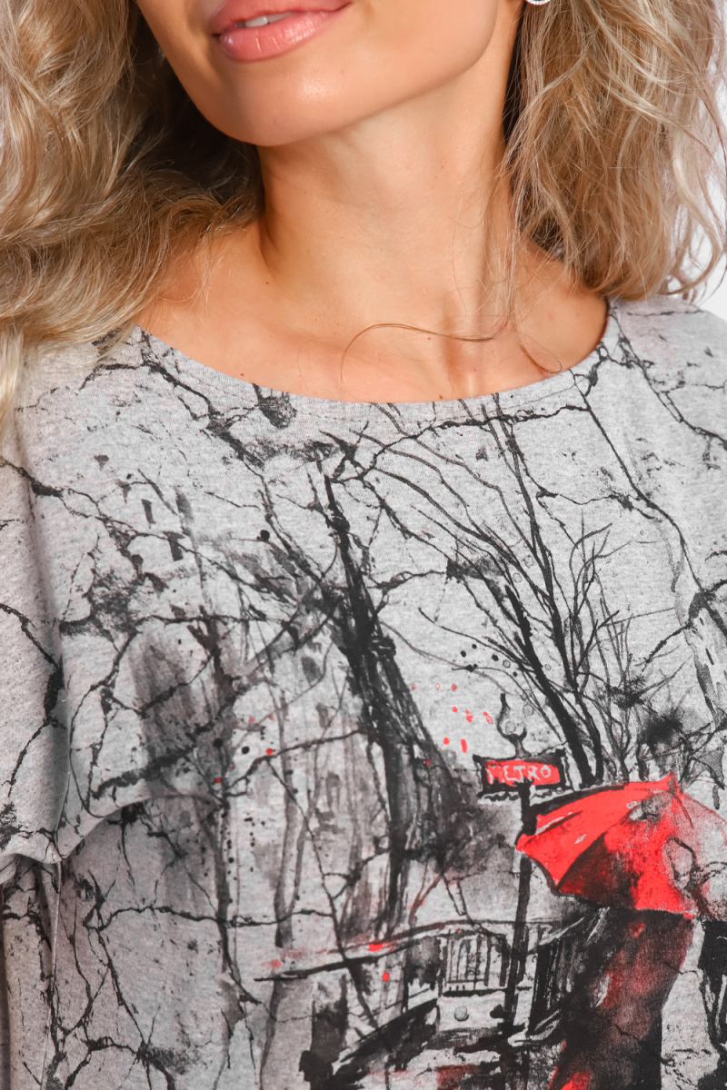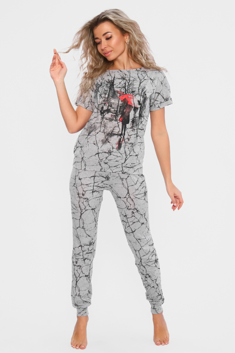 Костюм повседневный, универсального назначения для работы и отдыха. Футболка с цельнокроеным удлиненным рукавом на манжете, горловина "лодочка" по низу притачной пояс, брюки с внутренними карманами и манжетой по низу.