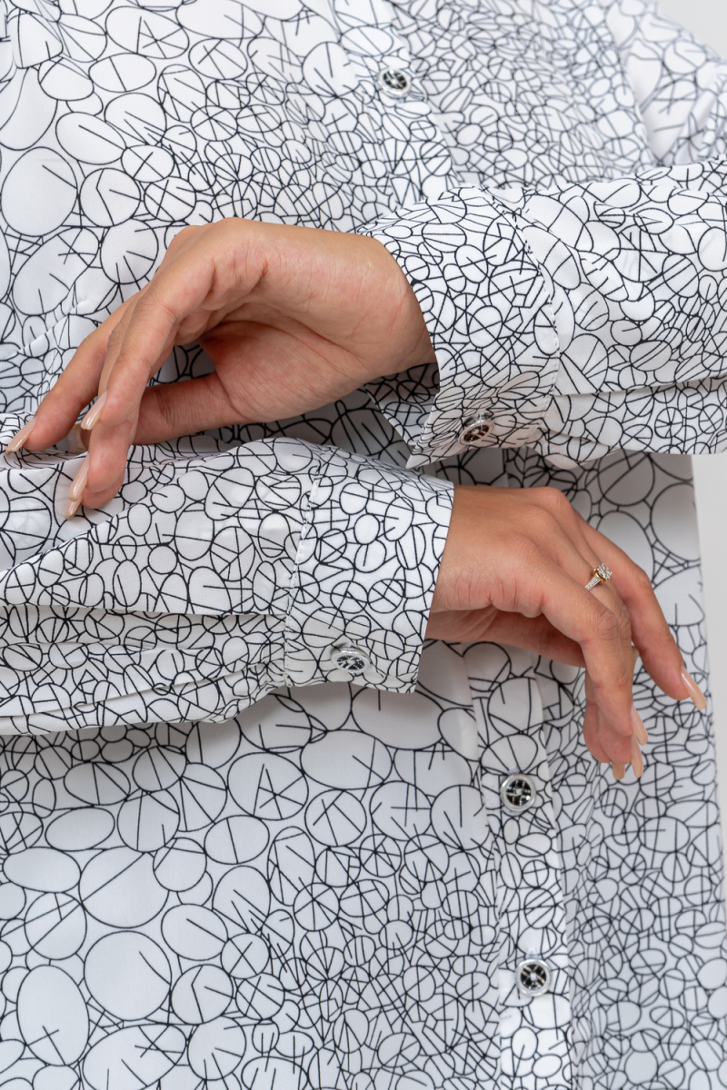 Цветная рубашка, представленная в двух вдохновляющих расцветках — белый и бирюза, добавит яркости и свежести в ваш образ. Обе расцветки являются универсальными и могут легко комбинироваться с различными аксессуарами, будь то скромный повседневный или броский праздничный вариант.